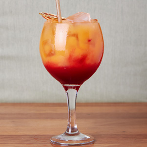 Zumo de naranja, zumo de Piña, zumo de melocotón y granadina.